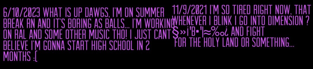 6/10/2023 What is up dawgs, I’m on summer break rn and it’s boring as balls… I’m working on RAL and some other music tho! I just cant believe I’m gonna start high school in 2 months 😦